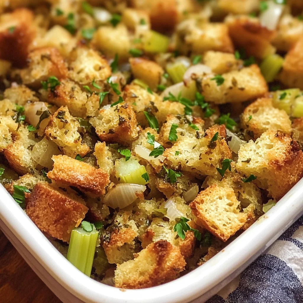 What makes this stuffing so special? It’s all about the balance—chewy bread cubes combined with savory herbs and buttery goodness create a dish that everyone will love. Plus, it’s easy to put together, making it a go-to recipe that never fails to impress!